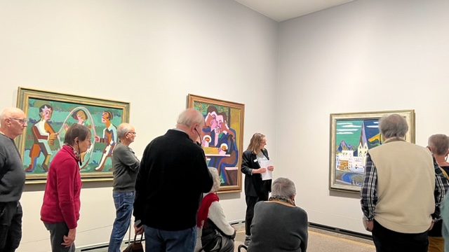 umb/ Für die Ausstellung hatten sich 23 Kunstinteressierte angemeldet. In der Ausstellung im Kunstmuseum finden sich unter anderem die gleichen Bilder wie in Kirchners Einzelausstellung 1933 in der Kunsthalle Bern. Interessant zu hören war, dass Kirchner jene Ausstellung sogar selber kuratiert hatte, weil er nichts dem Zufall überlassen wollte. Besondere Aufmerksamkeit bei der Führung wurde dem Monumentalbild „Sonntag der Bergbauern“ geschenkt, hängt doch diese Bild sonst im deutschen Kanzleramt. Nach den vielen interessanten Informationen war im nahen Bistro „obolle“ für eine kleine Erfrischung reserviert.